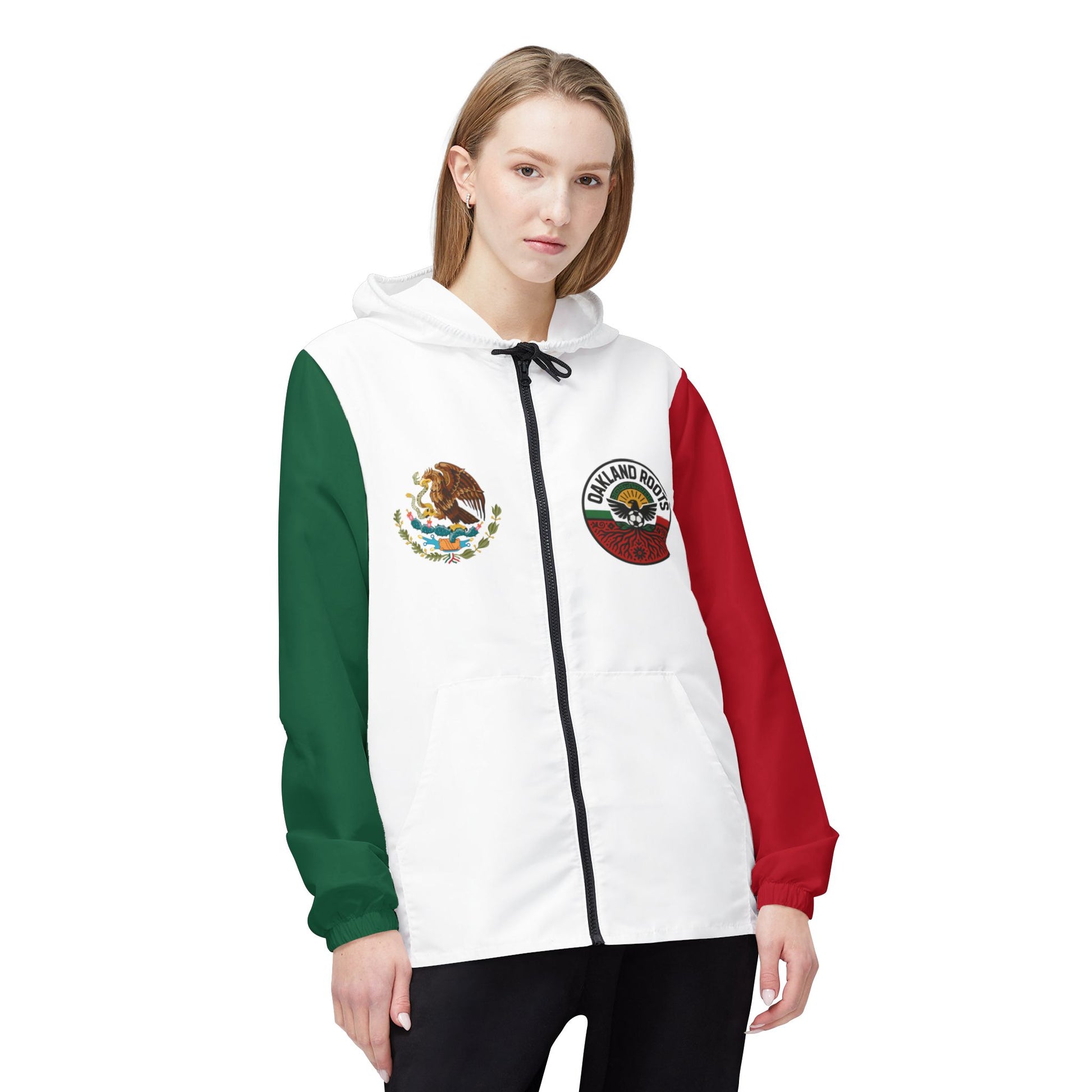 This limited-edition windbreaker fuses the powerful spirit of the Oakland Roots SC with the vibrant legacy of the Mexican flag—honoring culture, community, and fútbol pride. From the red, white, and green to the colorful roots badge, this is for la gente who rep their identity with pride.